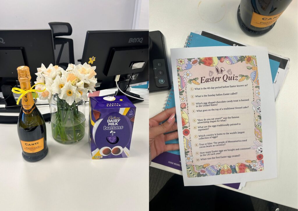 The team were treated to a lovely Easter surprise today A big thank you to our managers and the company for the Easter eggs and prosecco – very much appreciated by everyone. I also hosted a little Easter quiz for the team, a great way to head into the long weekend!